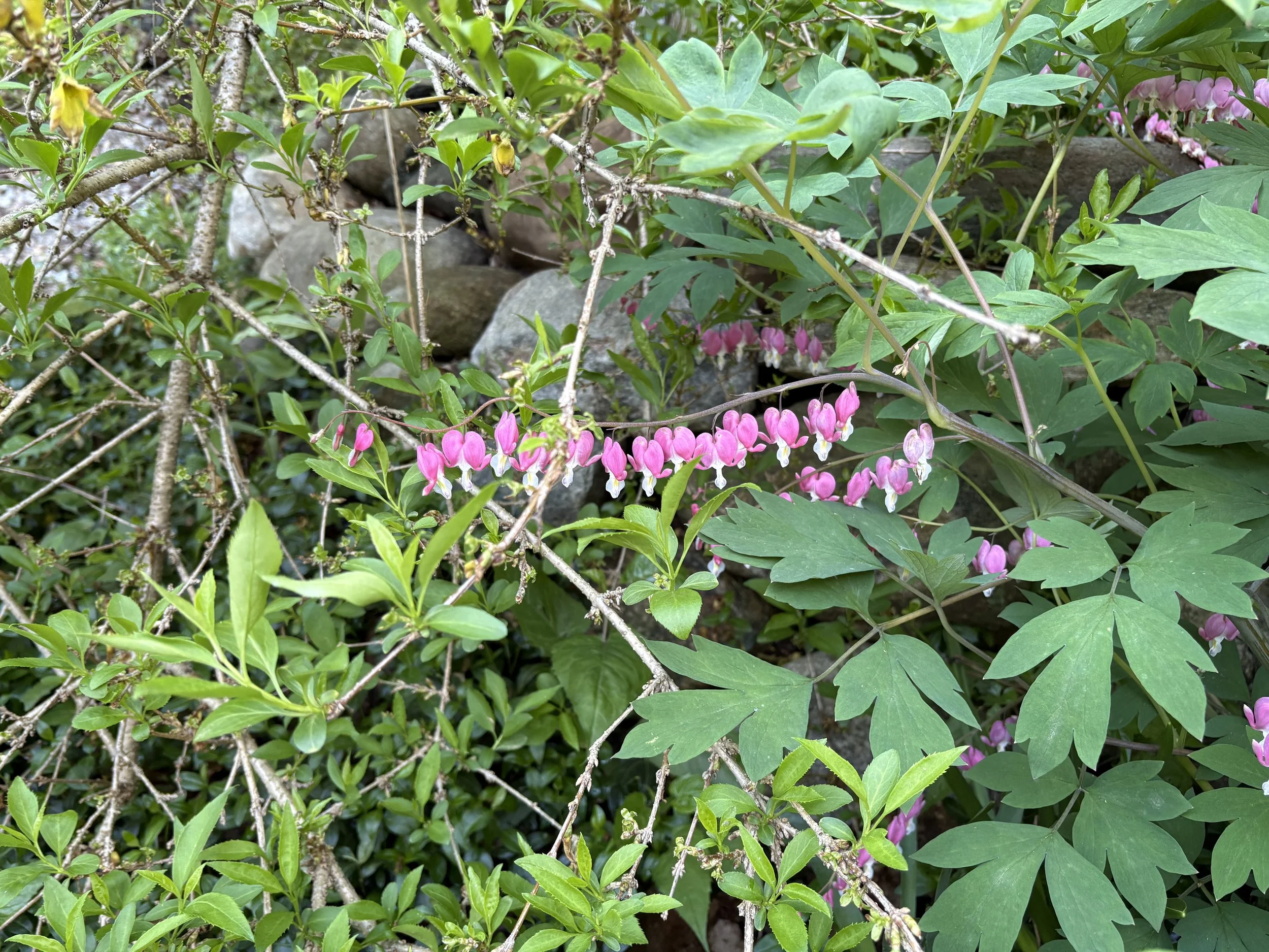 It has been a glorious day here in Vermont, after so very many days of rain. The sun alone would be enough to make this day feel spacious and good to me. On a sunny, breezy day in Spring, all things seem possible. On my walk yesterday after the skies cleared, I saw so many beautiful plants boldly leaning into the sun, including these sweet bleeding hearts.